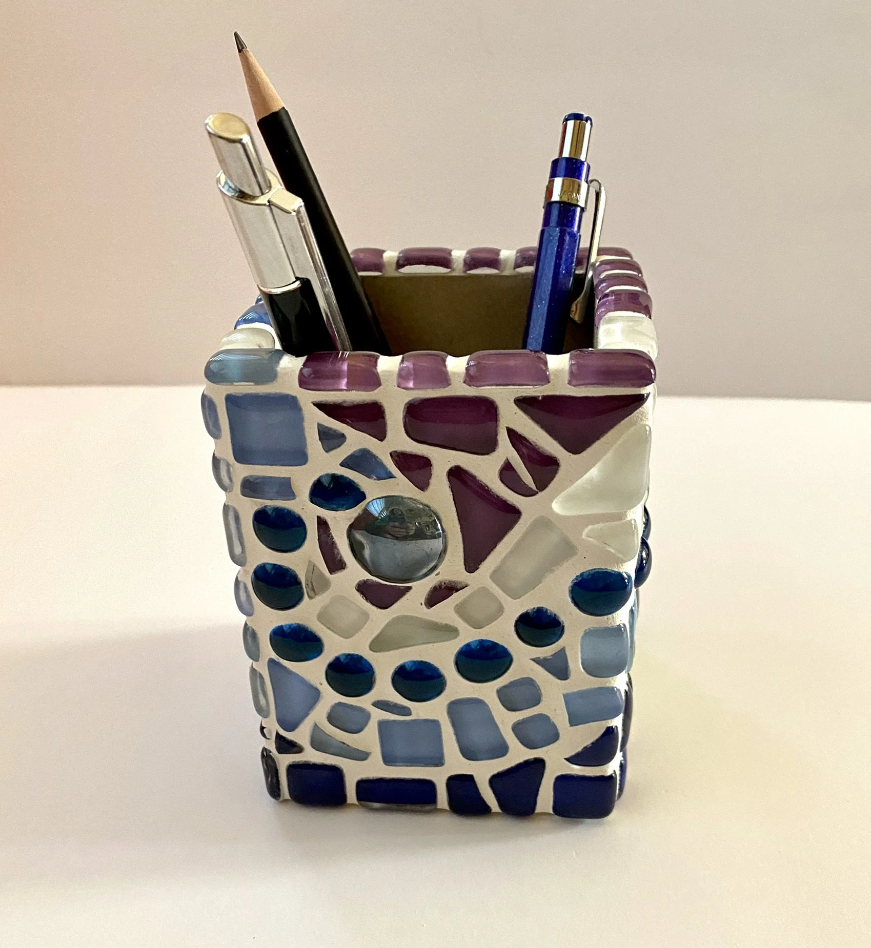 Pahar suport creioane - din lemn, decorat cu mozaic - 180 lei