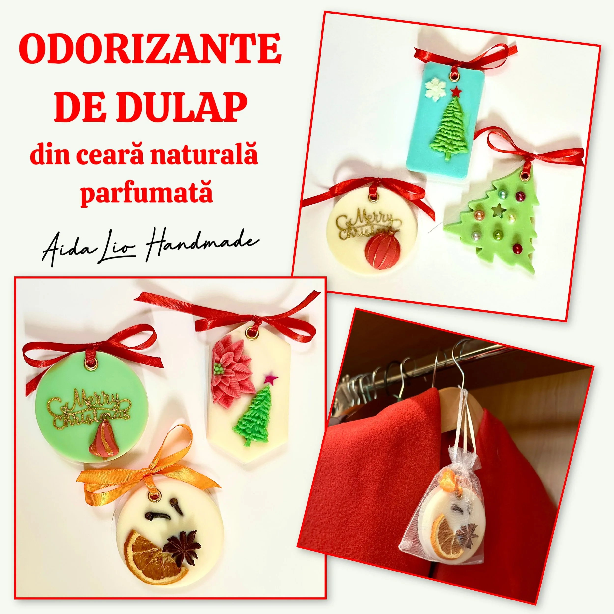 Aromă de Crăciun - odorizante de dulap din ceară naturală parfumată decorată cu elemente naturale (portocale, anason, scorțișoară, cuișoare) - 50 lei/set de 3 buc